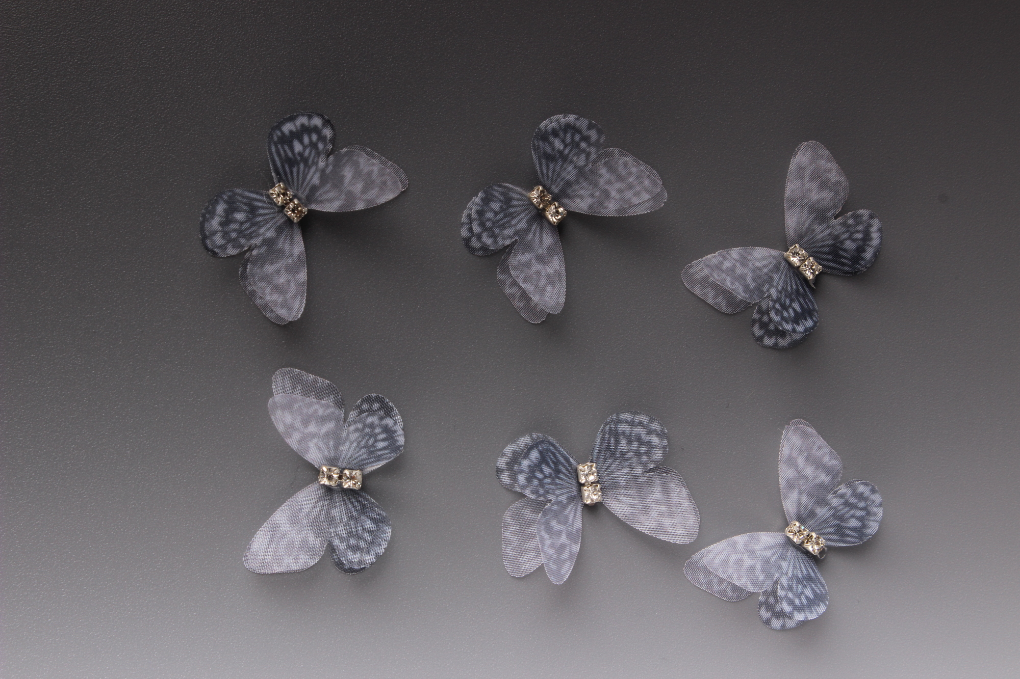 Бабочки шифоновые со стразами (серый) 3 см (10 шт)