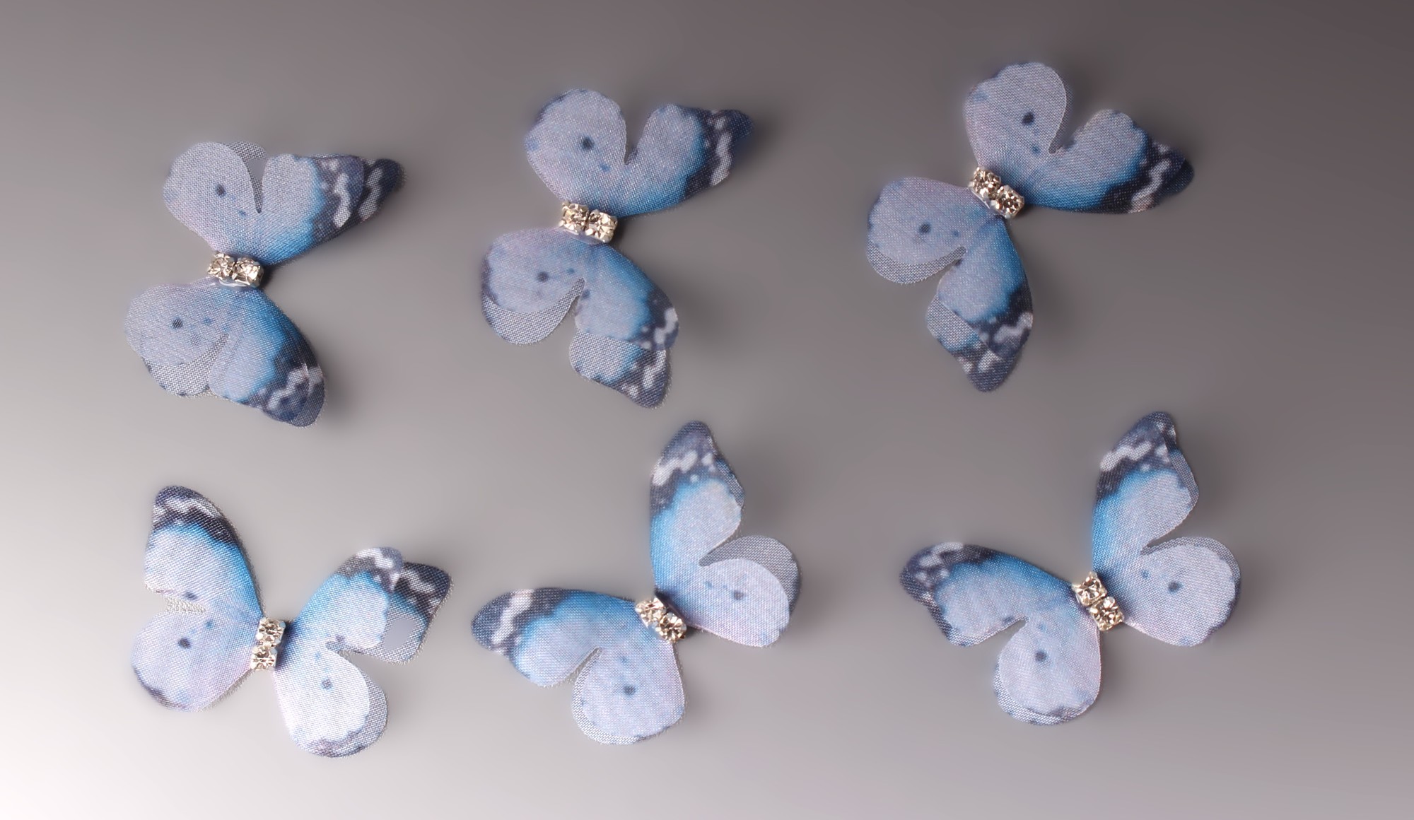Бабочки шифоновые со стразами (синий) 3 см (10 шт)