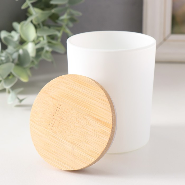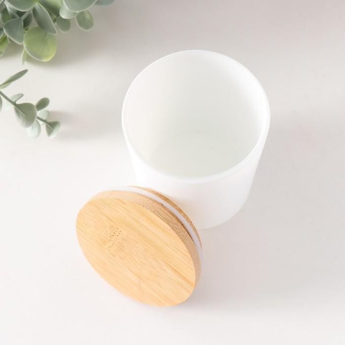 Банка для свечей стеклянная с крышкой «Белая матовая» 220 мл 7×7×8.4 см