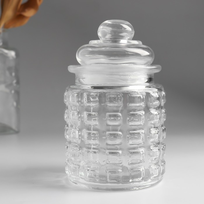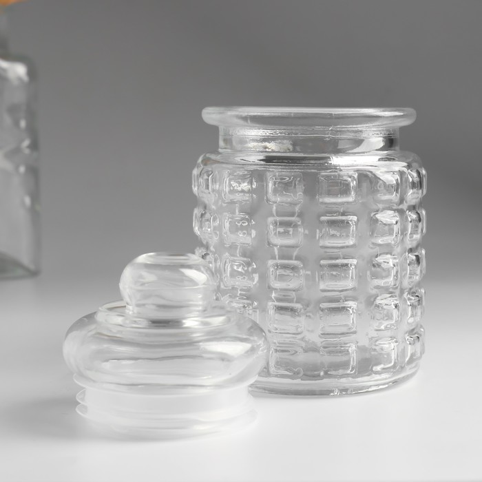 Банка для свечей стеклянная с крышкой фигурной «Квадратики» прозрачная 250 мл 7.5×7.5×12.5 см
