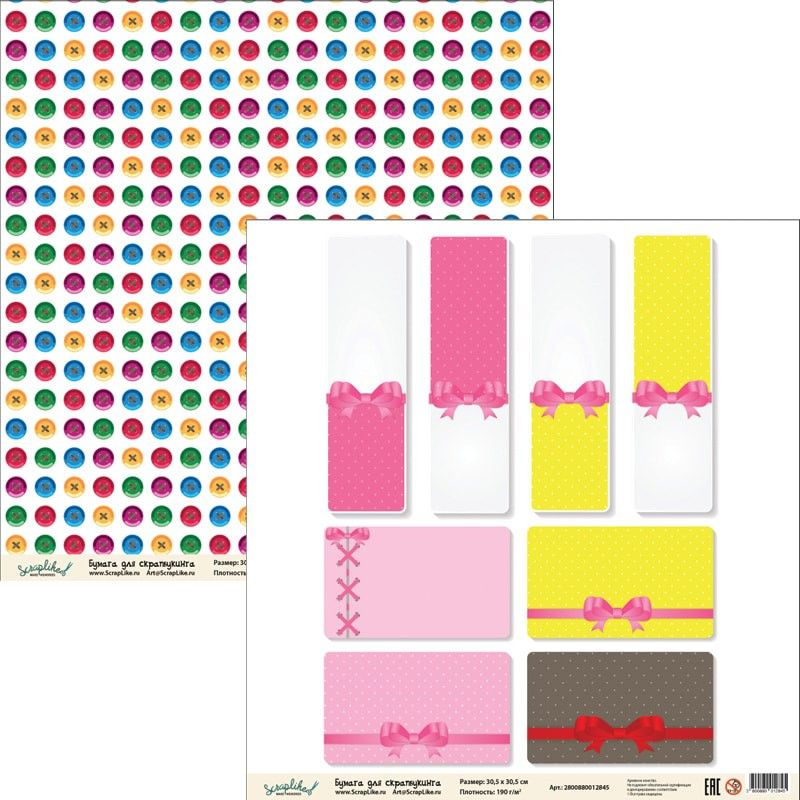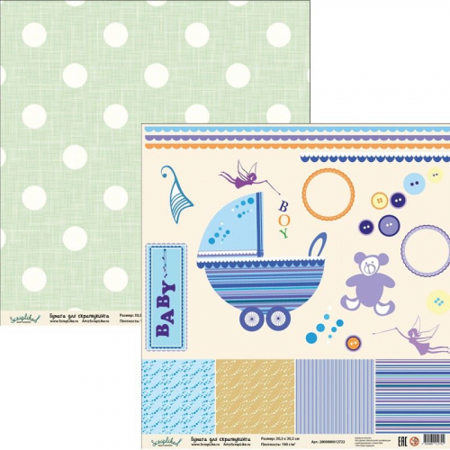 Бумага для скрапбукинга Детство ДТС007 30,5х30,5 см 190гр/м2, 1 лист