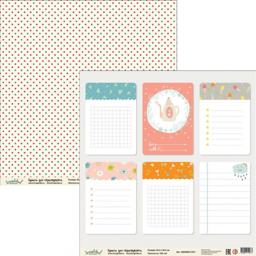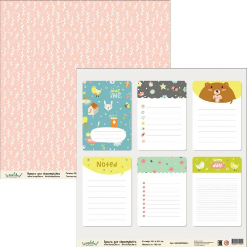 Бумага для скрапбукинга Детство ДТС011 30,5х30,5 см 190гр/м2, 1 лист