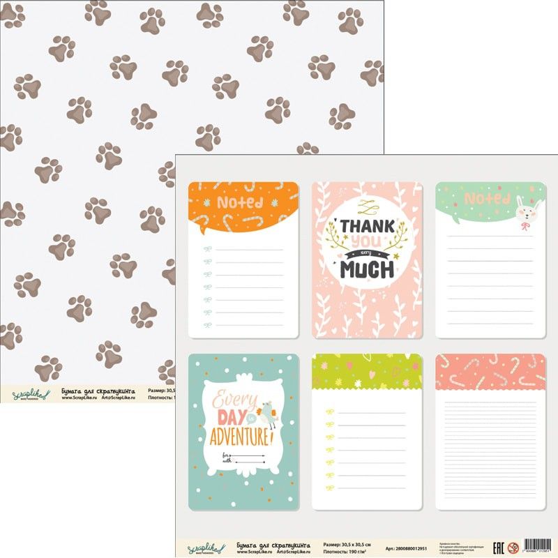 Бумага для скрапбукинга Детство ДТС012 30,5х30,5 см 190гр/м2, 1 лист
