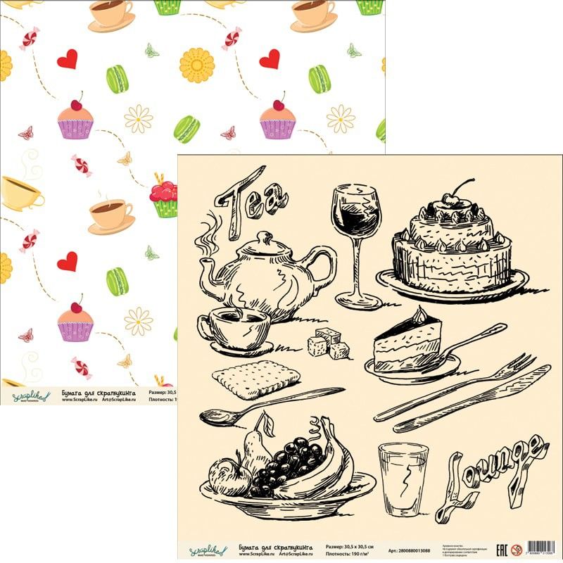 Бумага для скрапбукинга Сладости ВСР010 30,5х30,5 см 190гр/м2, 1 лист