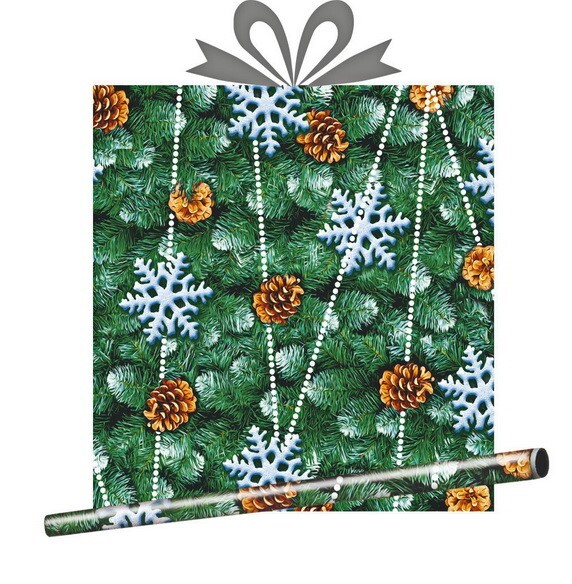 Бумага упаковочная новогодняя глянцевая 70*100 см Еловые бусы