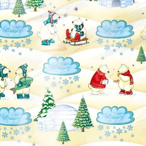 Бумага упаковочная новогодняя глянцевая 70*100 см Время подарков