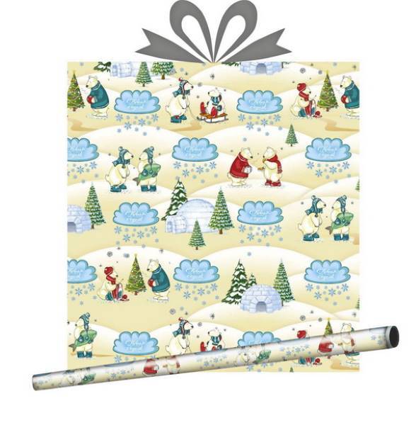 Бумага упаковочная новогодняя глянцевая 70 см*10 м Северный полюс
