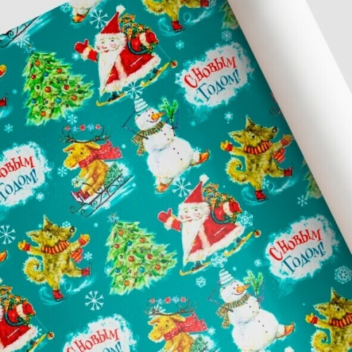 Бумага упаковочная новогодняя тишью 70 см*40 м Снежная поэзия