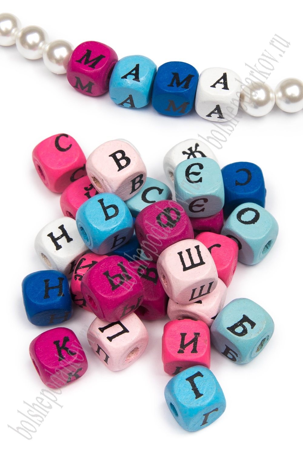 Бусины деревянные квадратные "Буквы" 10 мм (25 гр) SF-2197, ассорти