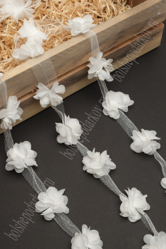 Цветочек шифоновый 4 см (35 шт) на ленте (SF-7042) бежевый №11