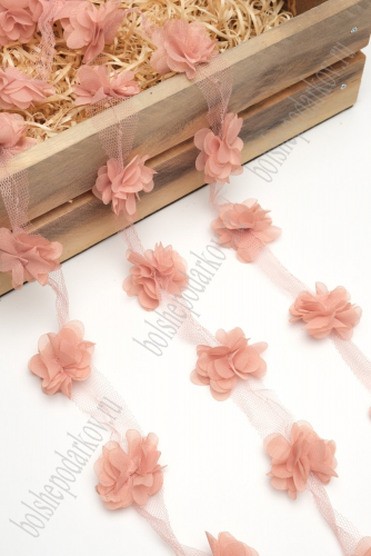 Цветочек шифоновый 4 см (35 шт) на ленте (SF-7042) розовый №176