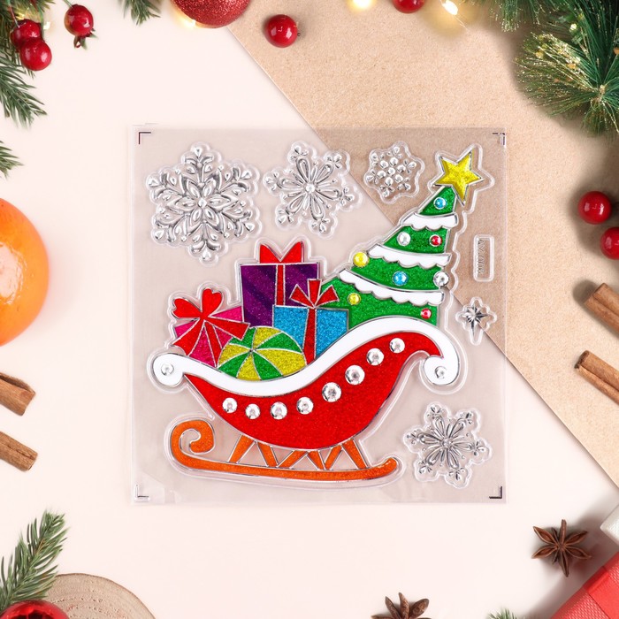 Наклейки на окна "Новогодние" сани с подарками, 21,5 х 16,5 см