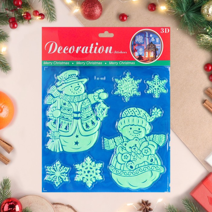Наклейки на окна, светящиеся «Новогодние», 27×21 см