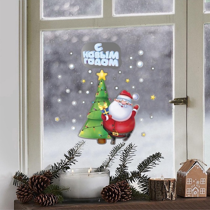 Наклейка новогодняя на окна, двусторонняя, металлизированная «Дед Мороз», 21×29.5 см