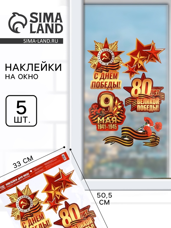 Наклейки на окна на 9 мая «С Днем Победы!», 33×50.5 см