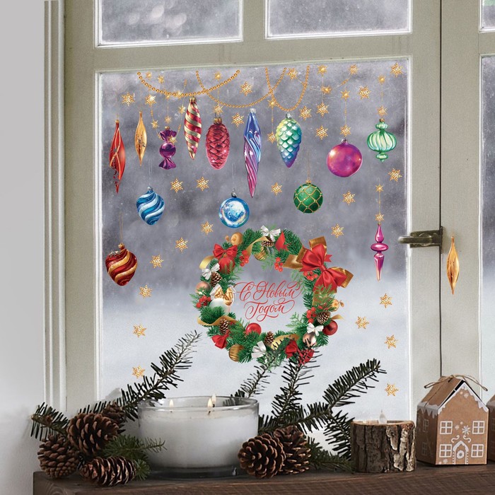 Наклейки на окна многоразовые «Новогоднее настроение», 50×70 см