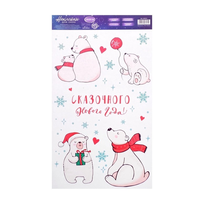 Наклейки на окна многоразовые «Новогодние мишки», 20×34 см