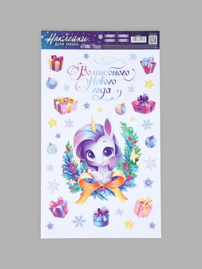 Наклейки на окна многоразовые «Новый год 2026», единорог, 20×34.5 см