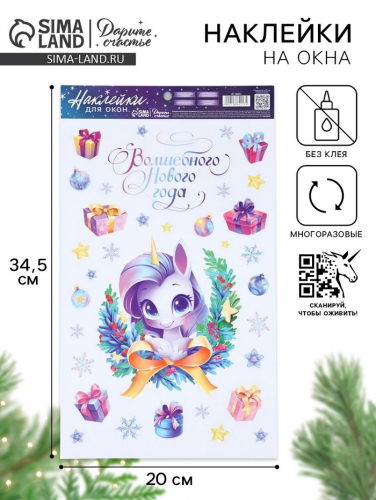 Наклейки на окна многоразовые «Новый год 2026», лошади, 20×34.5 см