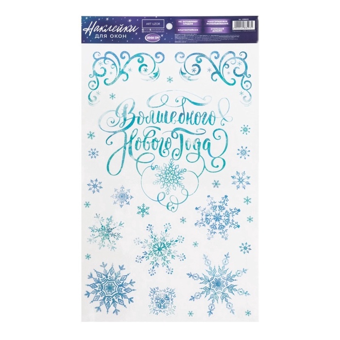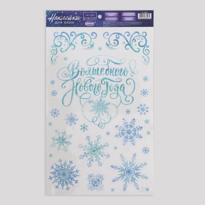 Наклейки на окна многоразовые «Новый год», снежинки 20×34 см
