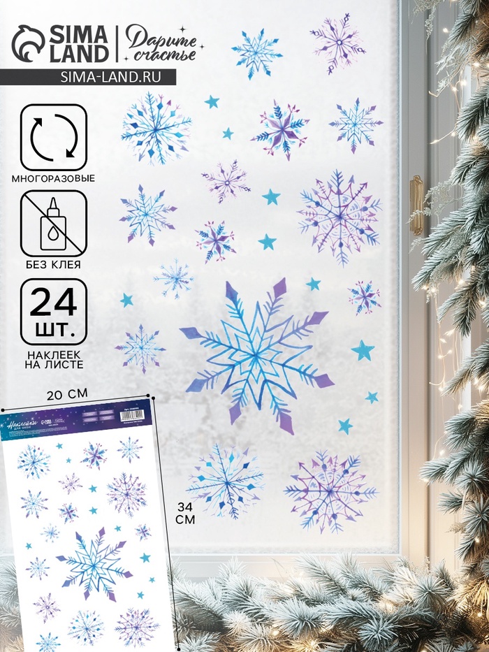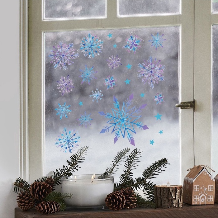 Наклейки на окна многоразовые «Новый год: Снежный день», 20×34 см