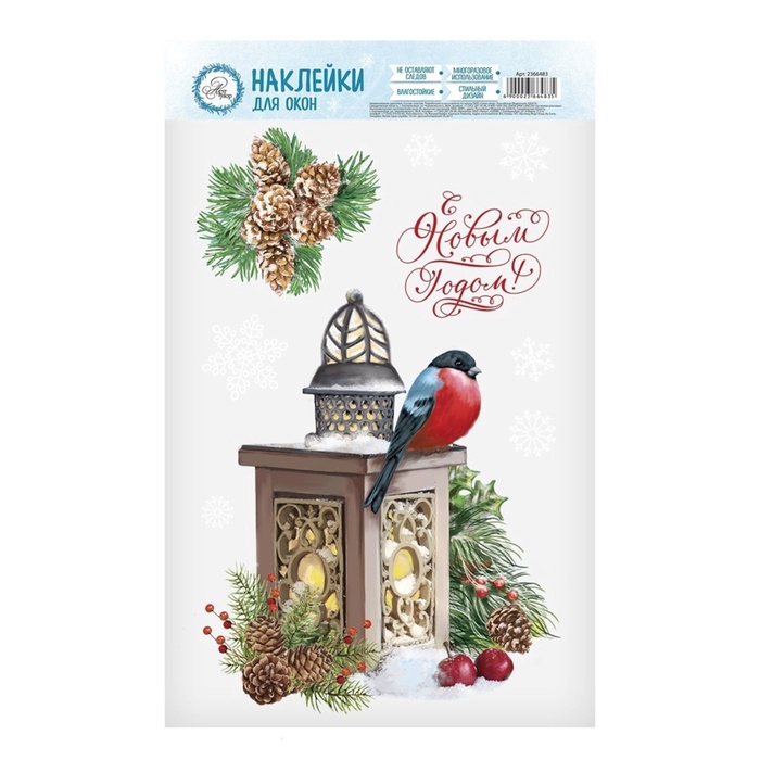 Наклейки на окна многоразовые «С Новым годом», 20×34 см