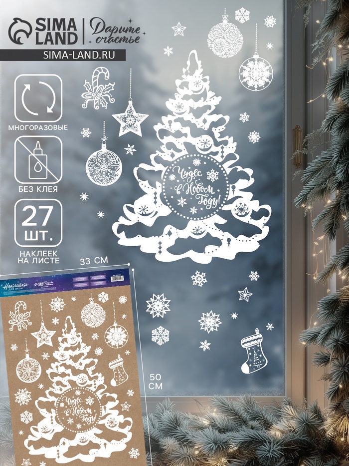 Наклейки на окна многоразовые «С Новым годом», 33×50 см
