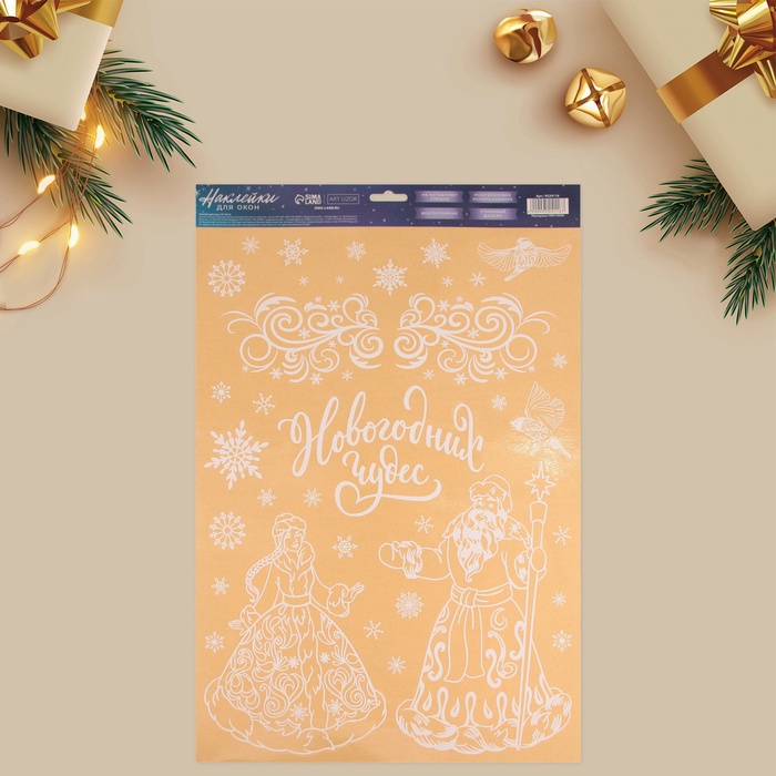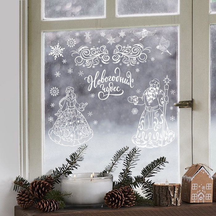Наклейки на окна многоразовые «С Новым годом», Дед Мороз и Снегурочка, 33×50 см