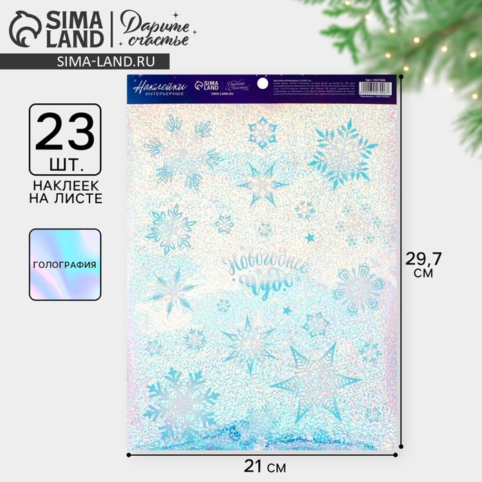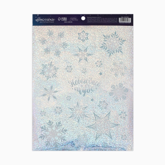 Наклейки новогодние интерьерные «Снежинки», голография, 21×29.5 см