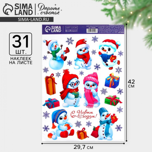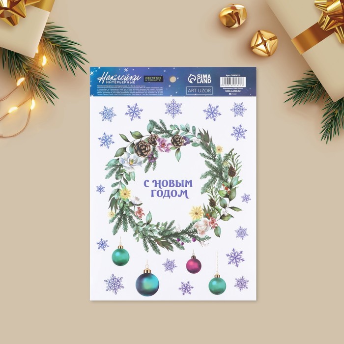 Наклейки новогодние, интерьерные со светящимся слоем «Новогодний венок», 21×29.5 см