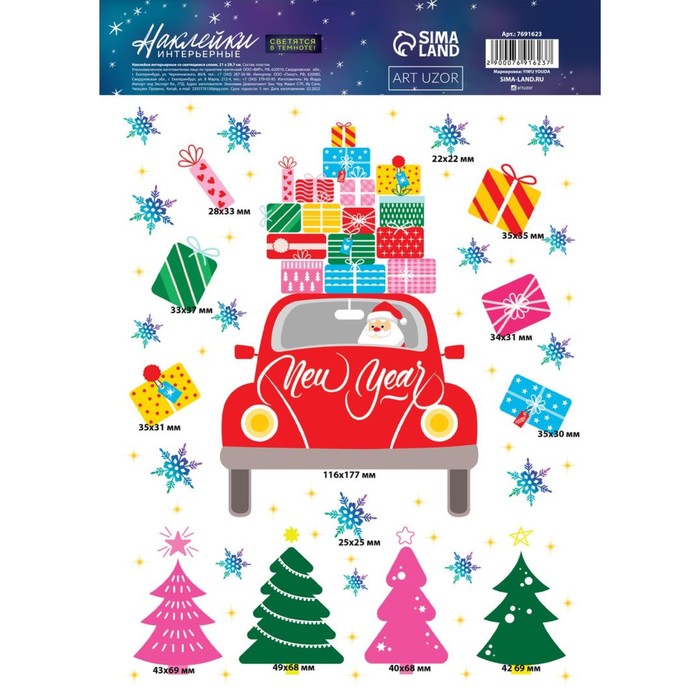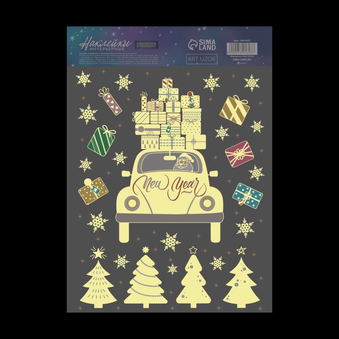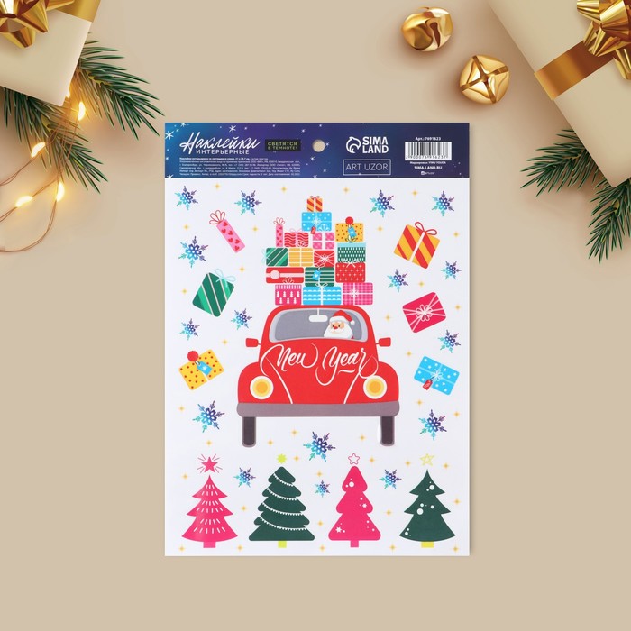Наклейки новогодние, интерьерные со светящимся слоем «Новогодняя доставка», 21×29.5 см