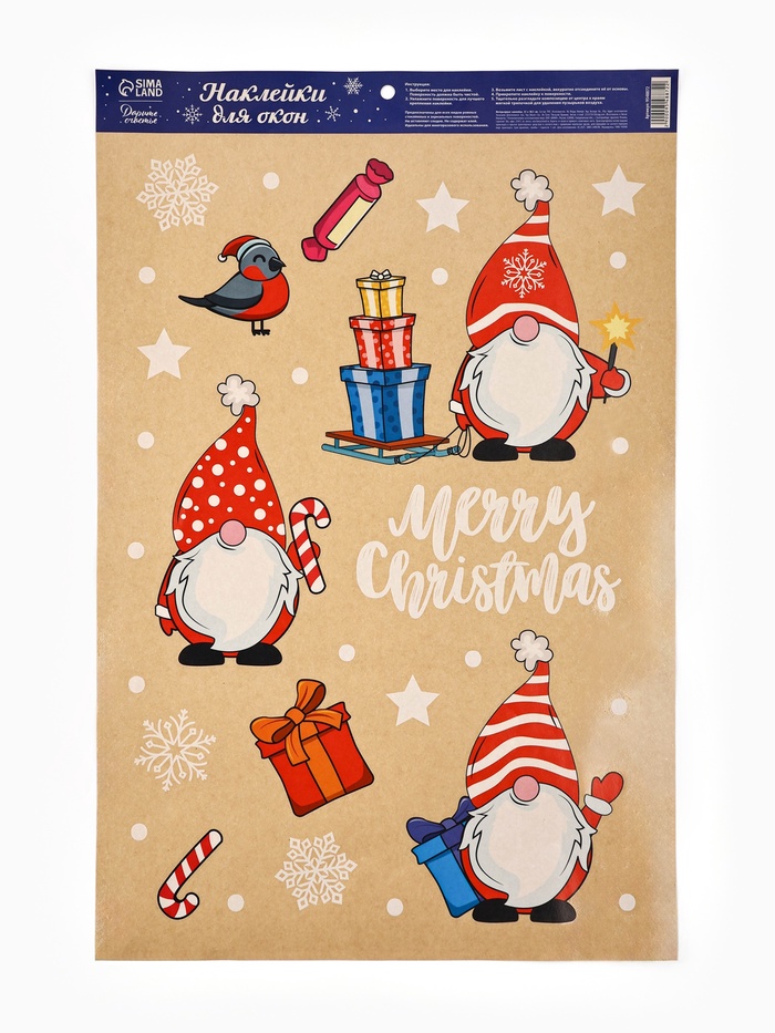 Наклейки новогодние на окна «Гномики», на Новый год, 33×50.5 см