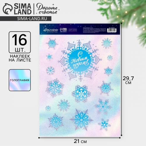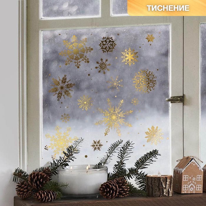 Наклейки новогодние виниловые с фольгированием «Снежинки», 30×50 см