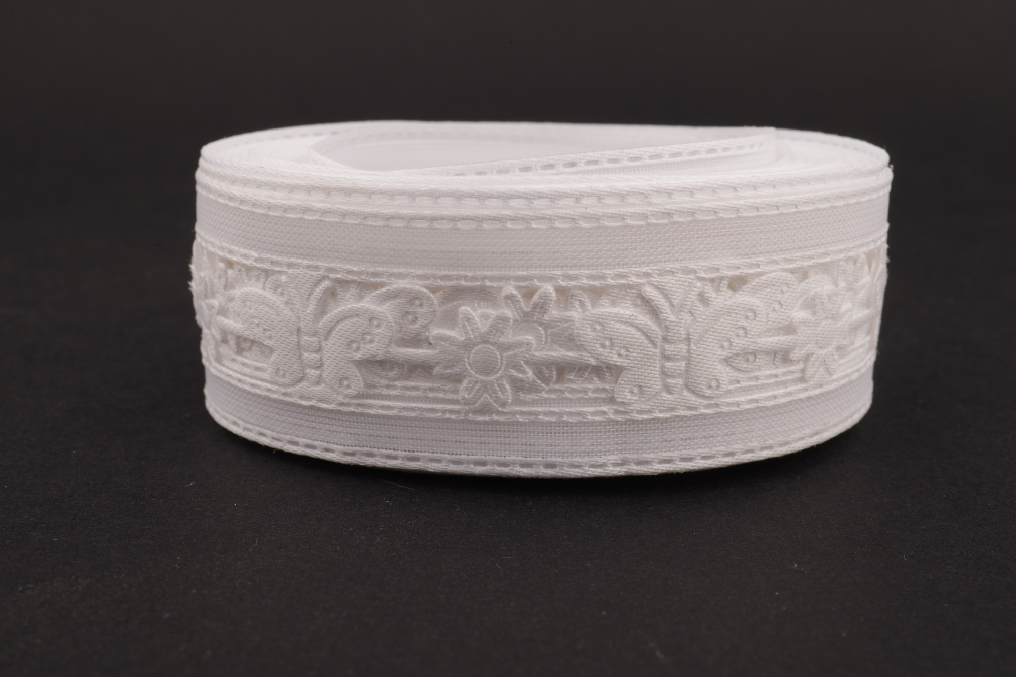 Купить декоративную ленту белого цвета перфорация "Бабочки и цветы" по оптовой цене  и сервисом высочайшего уровня всегда можно в магазине lentoff.ru.