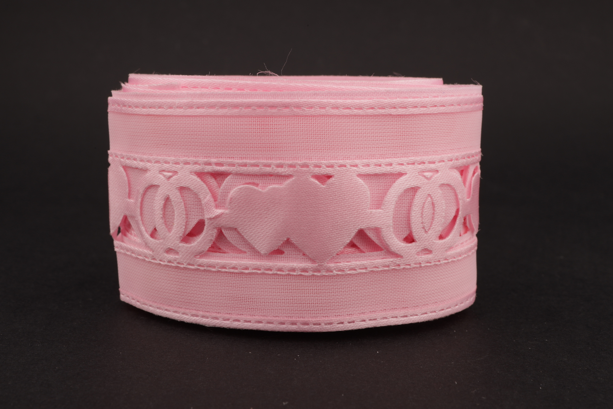 Купить ленту декоративную нежно-розового цвета перфорация "Сердца и кольца", капроновой вставкой по краю и атласной окантовкой по оптовой цене с доставкой можно в нашем интернет-магазине. Качество товара на высочайшем уровне. А сервис обслуживания станет только приятным дополнением.