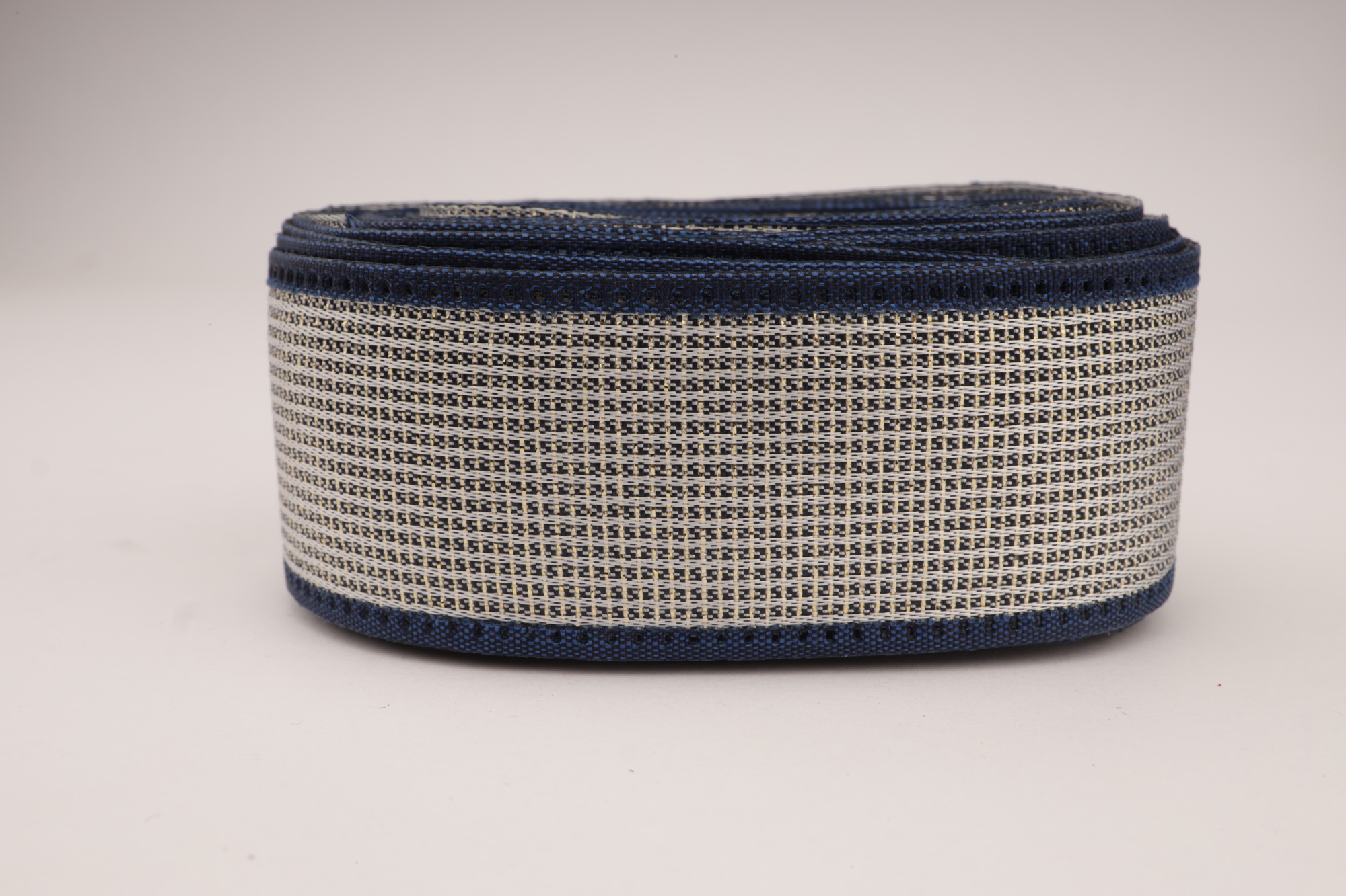 Купить декоративную ленту цвета джинс с белой нитью и люрексом золото по оптовой цене  и сервисом высочайшего уровня всегда можно в магазине lentoff.ru.