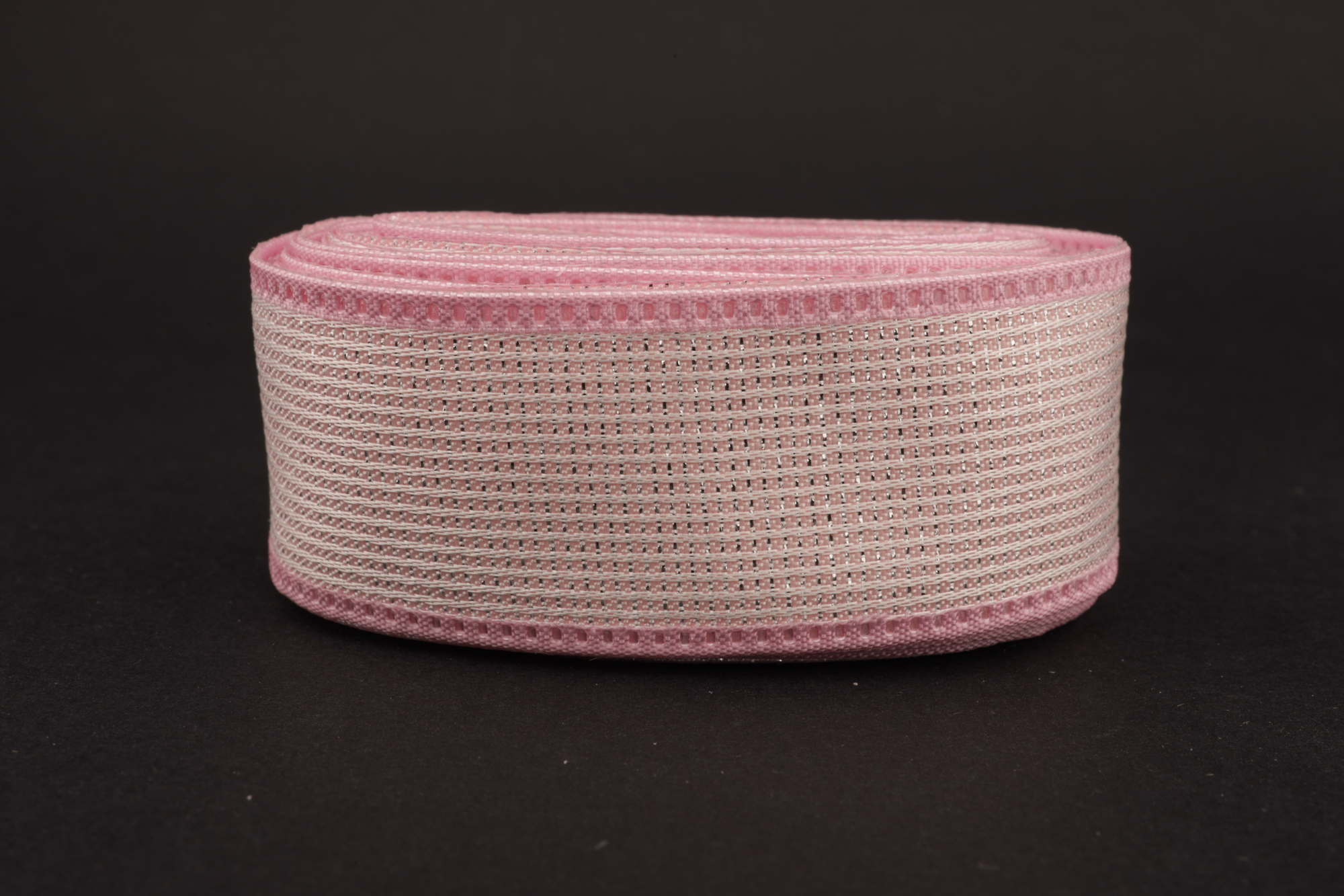 Купить декоративную ленту нежно-розового цвета с белой нитью и люрексом серебро в любое удобное для вас время, всегда возможно в нашем интернет-магазине "Лентофф".