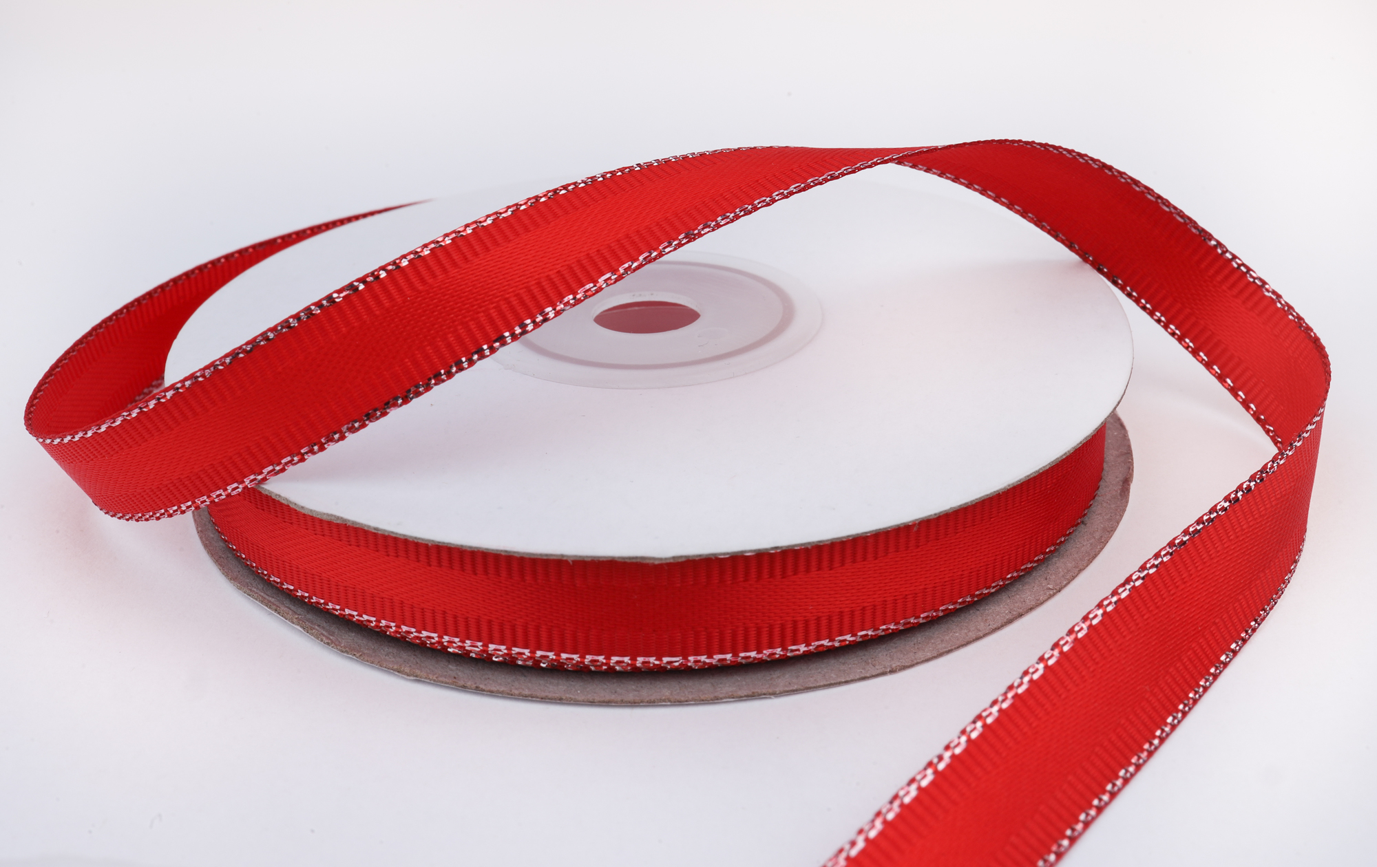 Декоративная лента с люрексом (алый, серебро), 10мм * 20 ярдов (+-1)