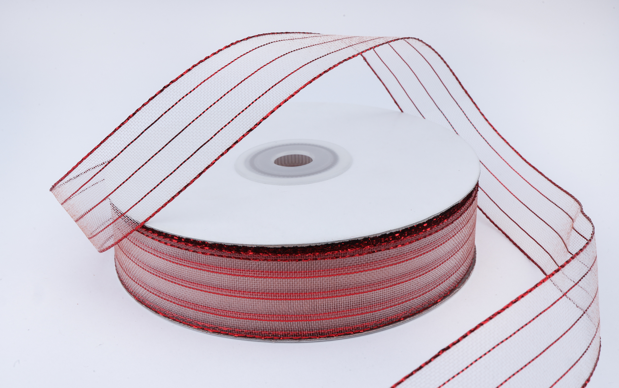 Декоративная лента с люрексом (белый, бордовый), 22мм * 50 ярдов(+-1)