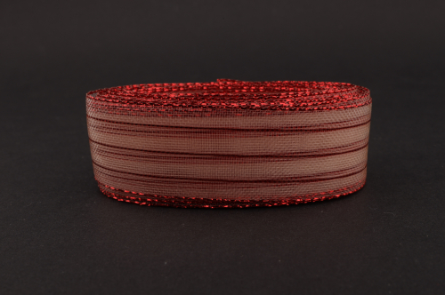Декоративная лента с люрексом (белый, красный), 22мм * 6 ярдов.