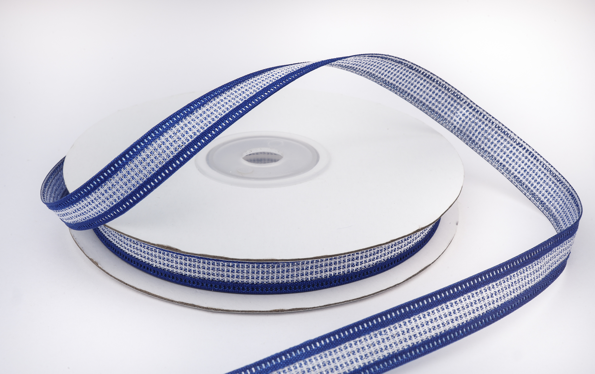 Купить декоративную ленту синего цвета с белой нитью и люрексом серебро в любое удобное для Вас время, всегда возможно в нашем интернет-магазине. Мы гарантируем качество, сервис высокого уровня и внимательность к любому вашему желанию.
