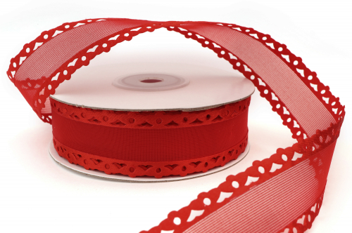 Декоративная лента с перфорацией (красный), 25мм * 20 ярдов(+-1)