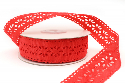 Декоративная лента с перфорацией (красный), 25мм * 20 ярдов(+-1)
