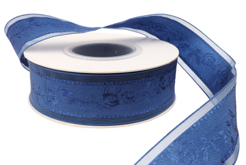 Декоративная лента с вышивкой (джинс), 25мм * 20 ярдов(+-1) широко используется для упаковки подарков, для букетов, художественное оформление витрин и праздничное оформление банкетов, так же изготовление искусственных цветов и новогодний серпантин . Так же декоративная лента применяется во флористике, при изготовлении альбомов, календарей, в пищевой промышленности (упаковка кондитерских изделий) и т. д.