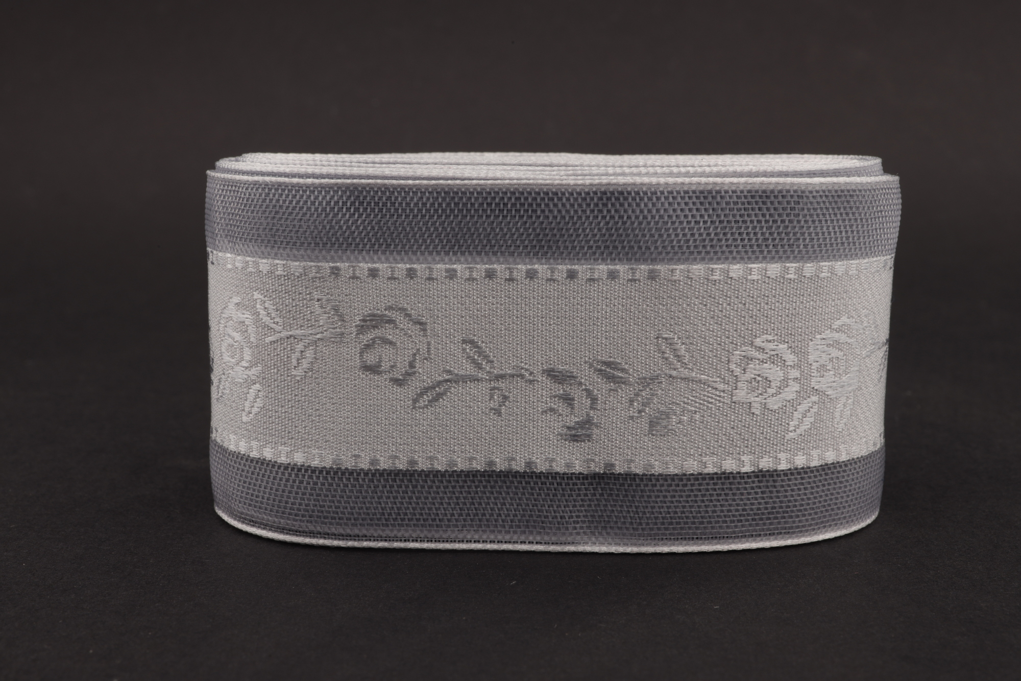 Купить декоративную ленту 40мм серого цвета с вышивкой в любое удобное для Вас время всегда возможно в нашем интернет-магазине.