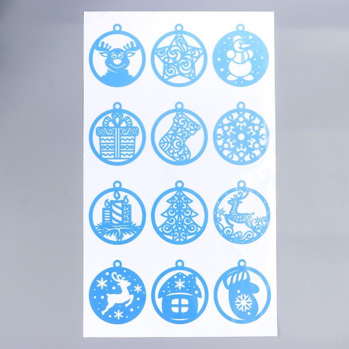 Декоративные наклейки новогодние «Подвески: ёлочные игрушки голубые», прозрачный фон, 30×50 см
