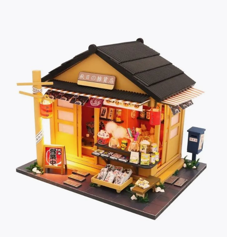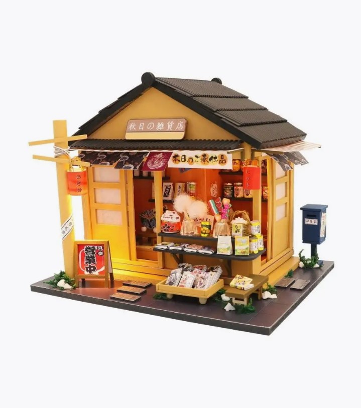 Подсветка, которая идет в комплекте, придаст непередаваемую атмосферу вашему кукольному жилищу. Работает все от двух батареек AAА (приобретаются отдельно). В комплекте идут множество деталей для создания стильного магазинчика с бакалеей.