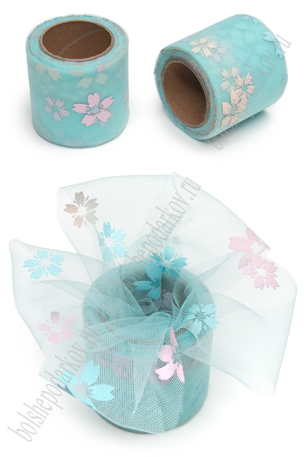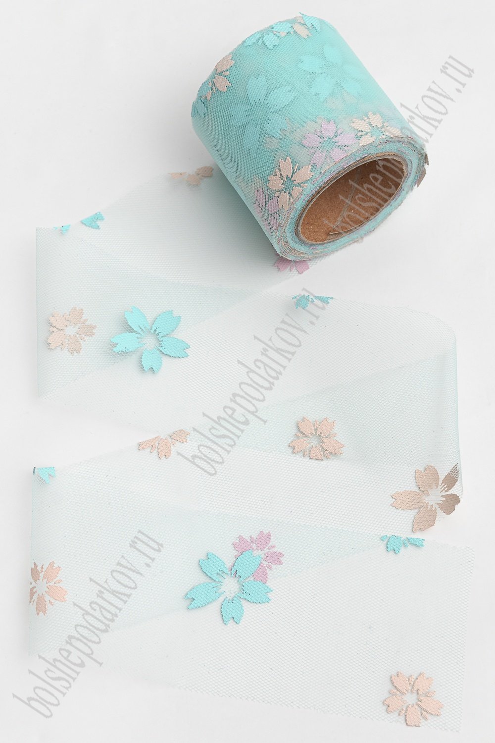 Фатин «Цветочки» 5,5 см*15 ярд (SF-6042) аквамариновый №27