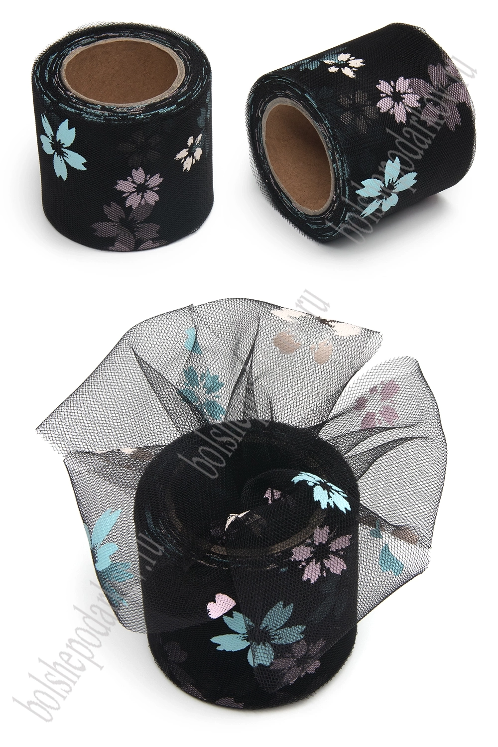 Фатин «Цветочки» 5,5 см*15 ярд (SF-6042) черный №2А