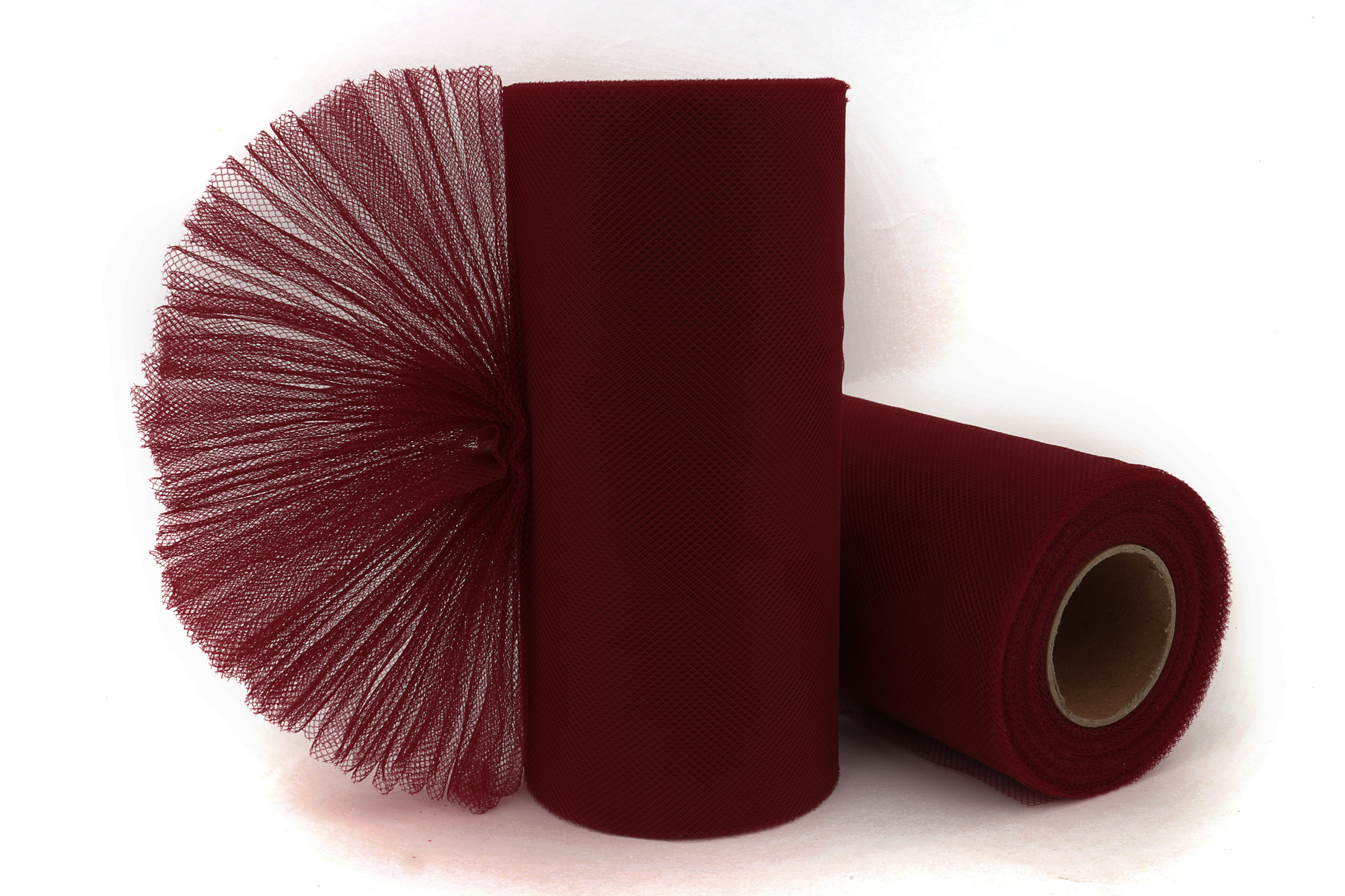 Купить фатин нейлоновый, средней жесткости 15 см * 25 ярдов(+-2м) бордового цвета в любое удобное для Вас время всегда возможно в нашем интернет-магазине.